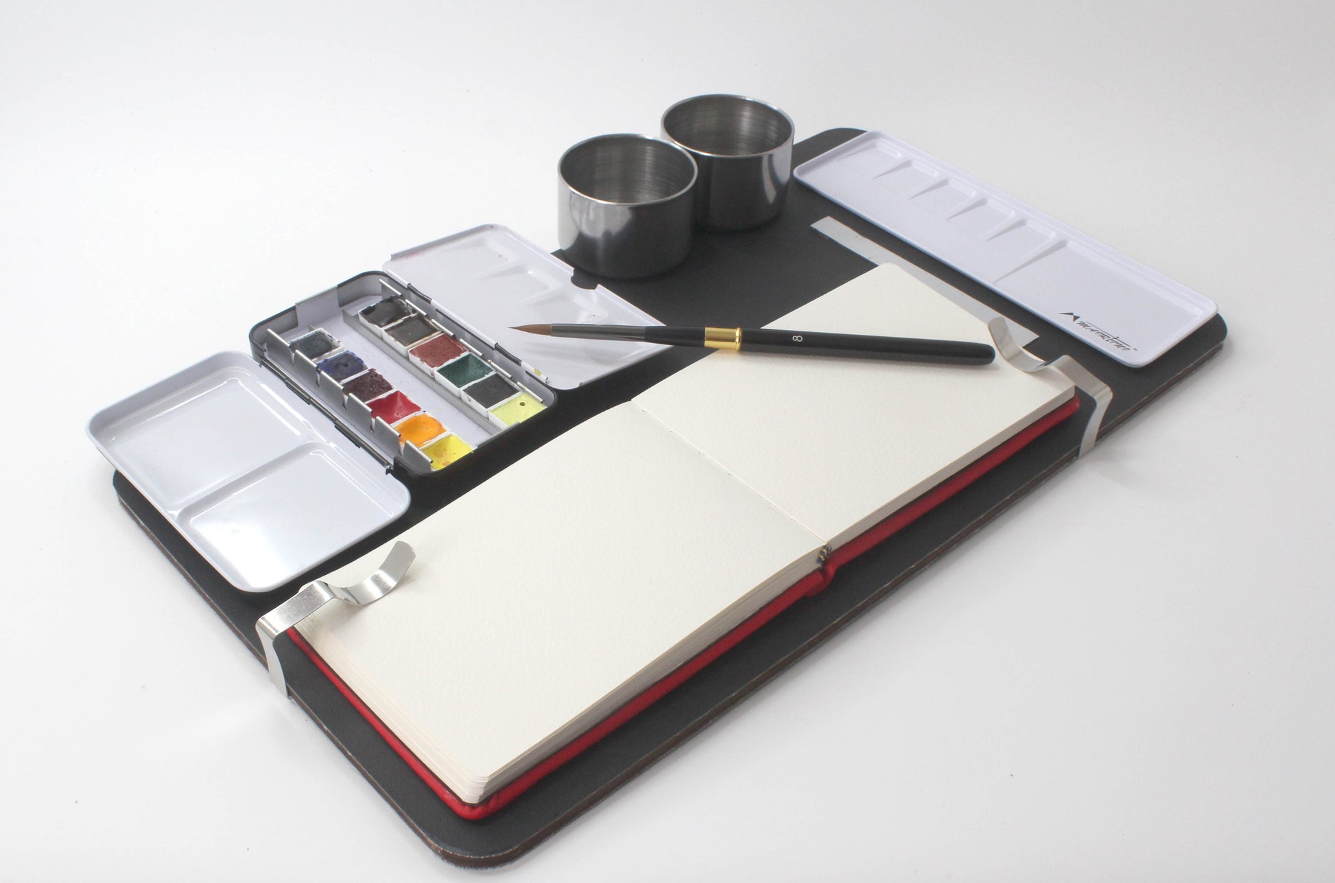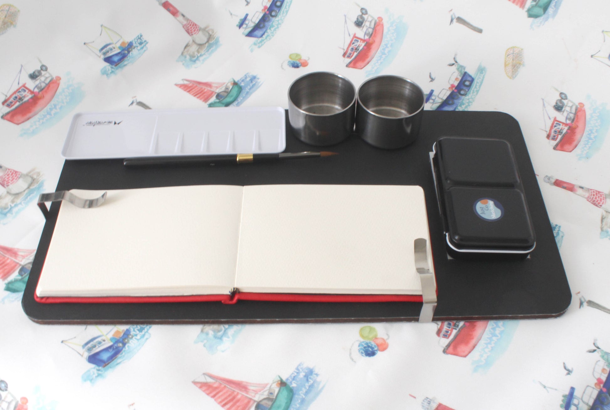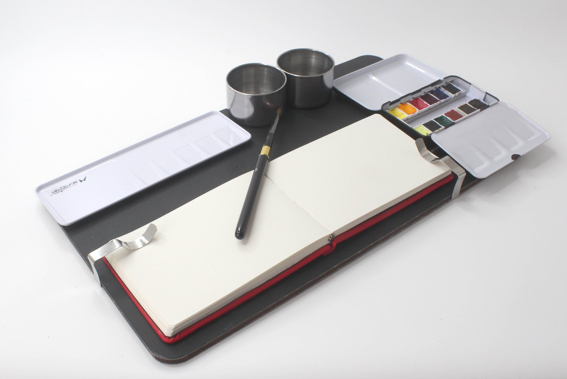 Do you use various sketching surfaces and need pads, books, or other types of paper? JustGoSketching support provides the flexibility to work with paper or pads up to A4 size, all of which are securely held in place on a solid surface. You can easily pick it up and put it down without needing to remove anything. The extra palette or pencil box can be added to the set as needed.